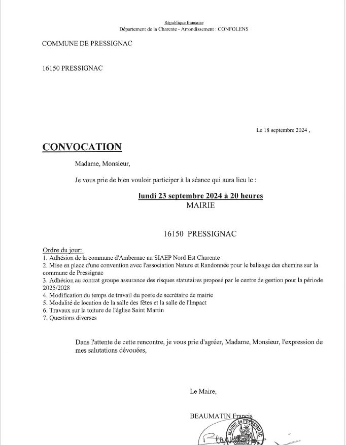 CONSEIL MUNICIPAL 23 SEPTEMBRE 2024Publié par secretariat le 18 septembre 202418 septembre 2024 Catégories : Vie Municipale