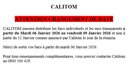 INFORMATION CALITOMPublié par secretariat le 19 décembre 202519 décembre 2025 Catégories : InformationsInformations diverses